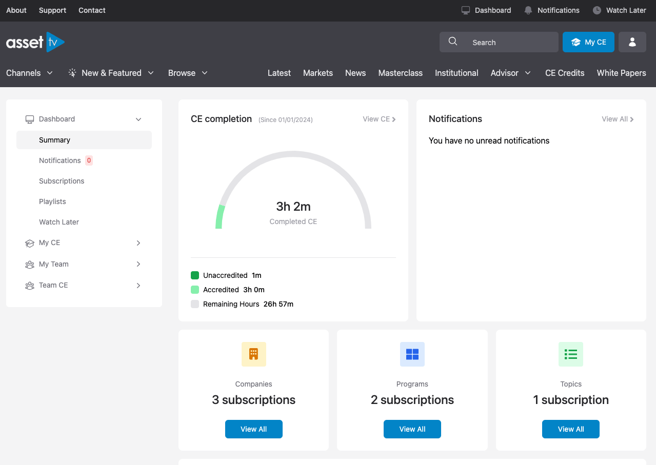 Your Dashboard is your central hub for managing your Asset TV account with ease! We've designed it to give you complete control over your features, all from one convenient place: