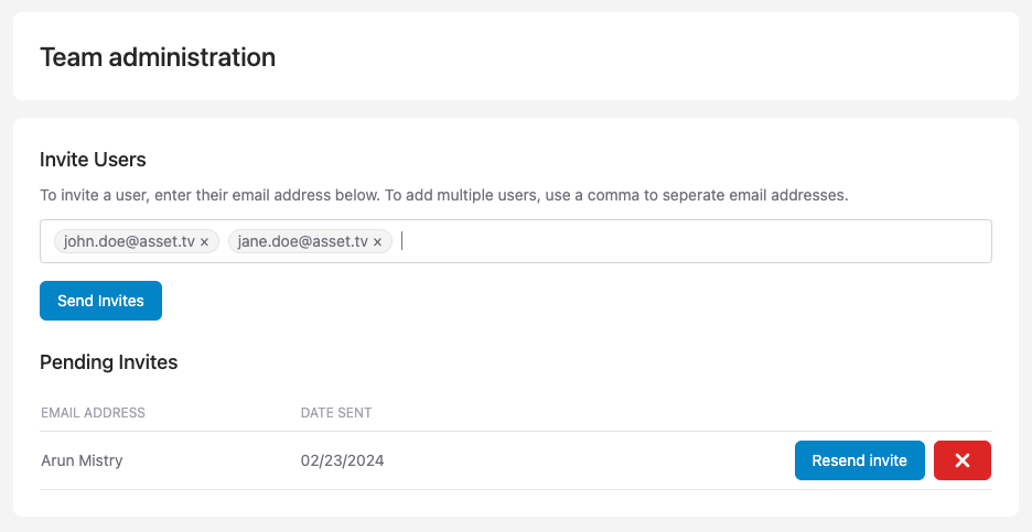 Users that haven't yet accepted an invite will show up in the "Pending Invites" section of your administration page, from here you can resend an invitation or cancel and invitation.