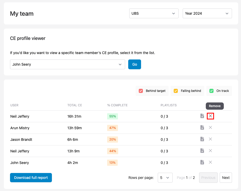 Only team managers have access to the Team CE portal, if you are a team member you should continue to access your CE via your personal dashboard.