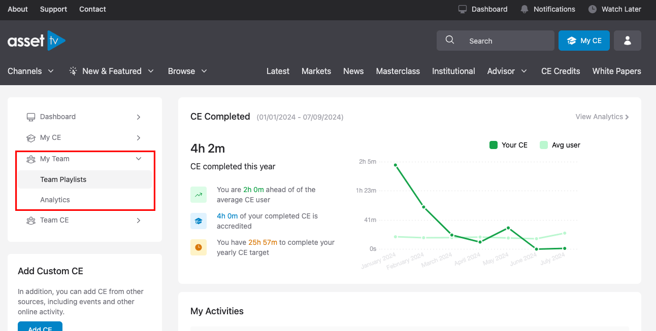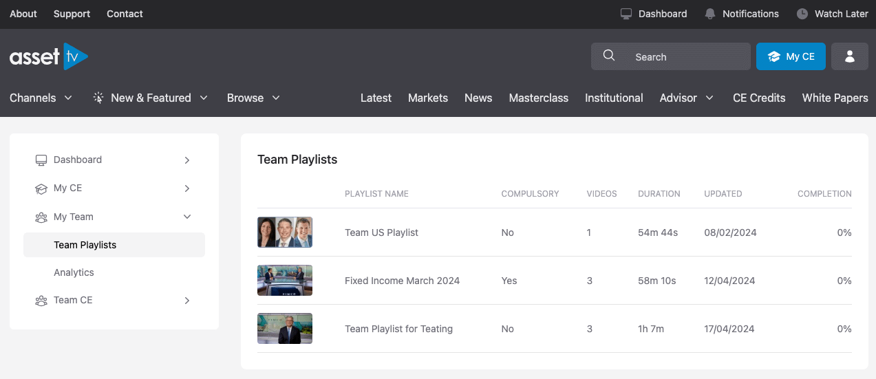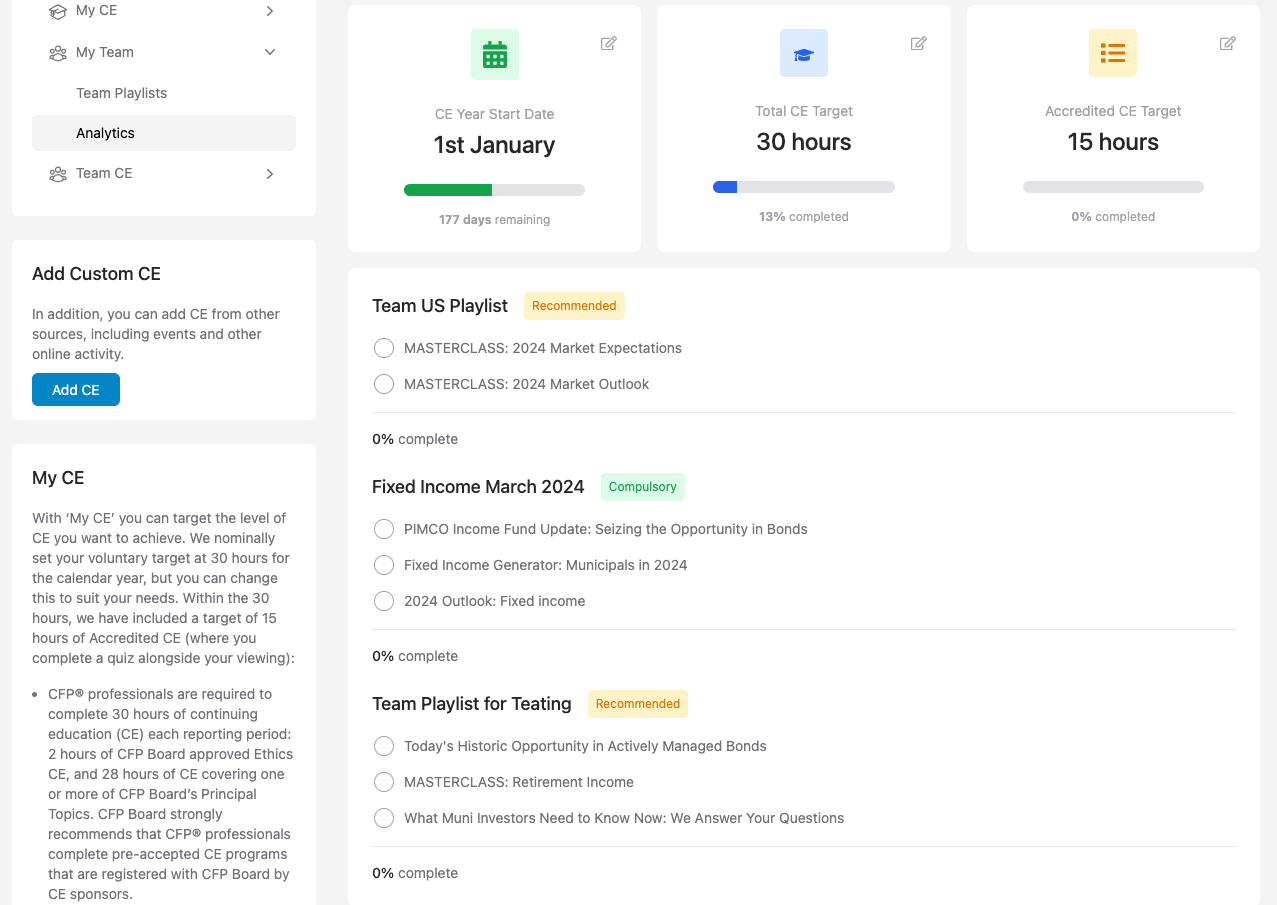 A more detailed view of your team playlists and how much you have completed is available from the "Analytics" section of your My Team options.